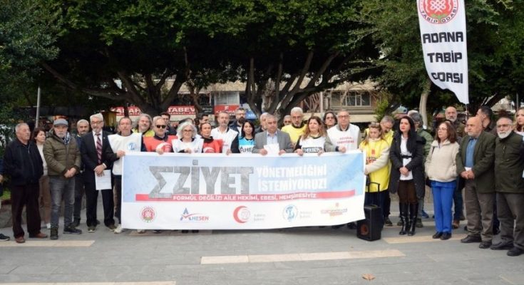dana Tabip Odası ile Sağlık ve Sosyal Hizmet Emekçileri Sendikası (SES), Genel Sağlık ve Sosyal Hizmet Kolu Kamu Çalışanları Sendikası (Genel Sağlık-İş), Aile Hekimliği Çalışanları Sendikası (AHESEN), Birinci Basamak Sağlık Çalışanları Birlik ve Dayanışma Sendikası (BDS) Adana şubelerinin çağrısıyla aile sağlığı merkezi (ASM) çalışanları, 27 Şubat 2025 günü Adana İnönü Parkı’nda bir basın açıklaması düzenledi.