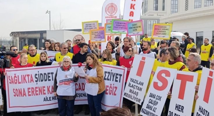 Birinci basamak sağlık hizmetlerinde örgütlü sağlık emek-meslek örgütlerinin oluşturduğu Aile Hekimliği Bileşenleri, 14 Mart Tıp Bayramı’nda Sağlık Bakanlığı önünde bir basın açıklaması düzenledi.