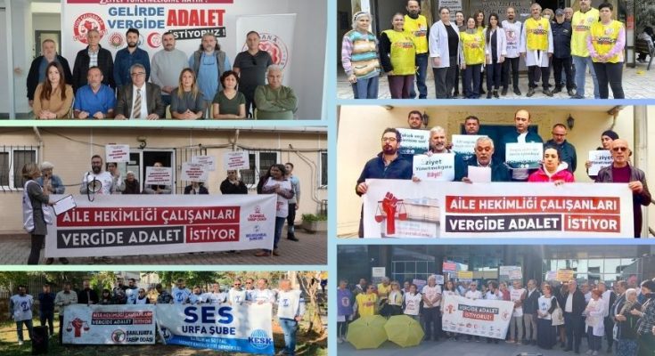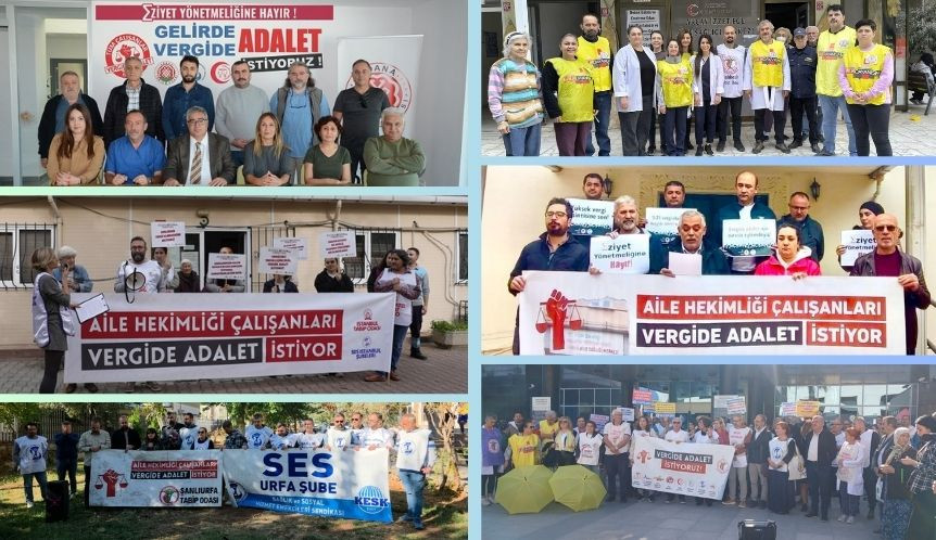 Aile sağlığı merkezlerinde (ASM) yapılan açıklamalarda “Eziyet Yönetmeliği’ne hayır”, “Aile hekimliği çalışanları gelirde-vergide adalet istiyor”, “Vergilerle yoksullaşma değil, vergide adalet istiyoruz”, “İsrafın kaynağı biz değiliz, tasarruf edeceğiniz biz olmayacağız”, “Yüksek vergi kesintisine son”, “Başka bir sağlık sistemi mümkün” yazılı pankart ve dövizler taşındı.