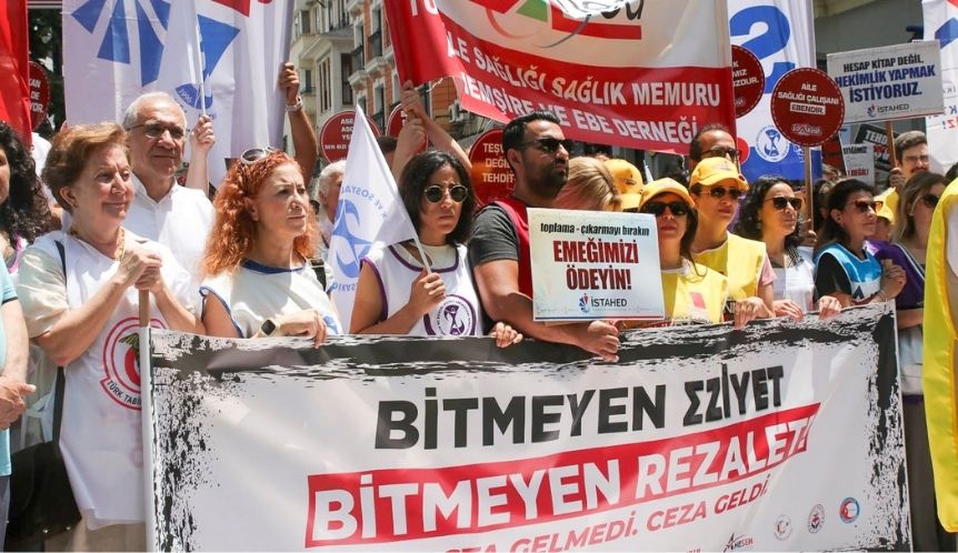Türk Tabipleri Birliği (TTB) Aile Hekimliği Kolu (AHEK) ve birinci basamak sağlık hizmetlerinde örgütlü emek-meslek örgütleri, aile sağlığı merkezlerine (ASM) 6 ay gelmemiş hastalar bahane edilerek ASM çalışanlarının ücretlerinden kesinti yapılmasına karşı 16 Haziran 2025 günü İstanbul İl Sağlık Müdürlüğü önünde bir basın açıklaması düzenledi.